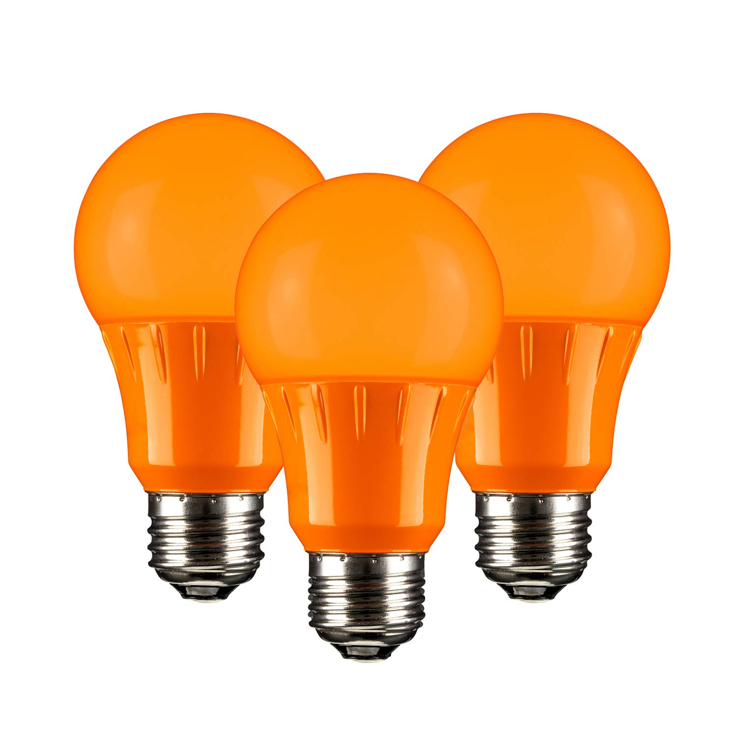 These non-dimmable colored light bulbs replace incandescent bulbs. They feature an A19 form with a medium E26 base. Typically used for party decorating, residential illumination, and holiday illumination. Even while in use, they stay cold to the touch.